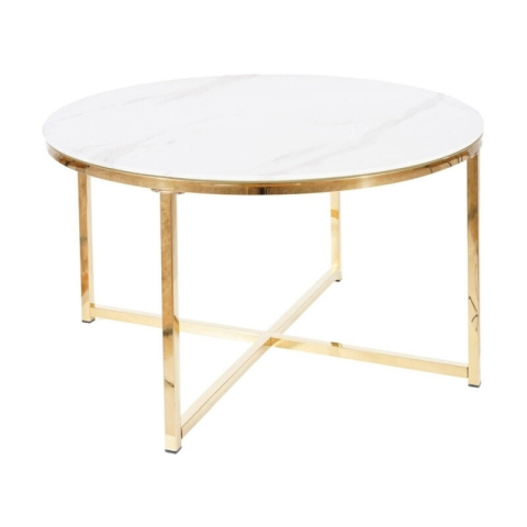 Teljes Signal Salma Luxus Kerek Dohányzóasztal Edzett Üveg Márvány Fehér Arany termékleírás