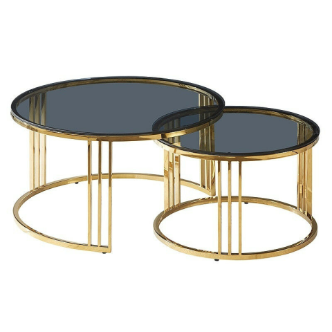 1 kép Signal Vienna Luxus Kerek Füstüveg Dohányzóasztal Szett Arany Vázzal