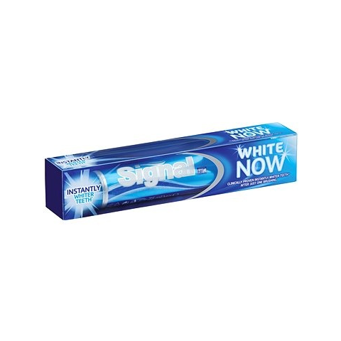 Fogkrém - fehérítő, zománcvédelem, fluoriddal, 75 ml kiszerelésben kapható Az egyedülálló Signal White Now fogkrém különleges fehérítő hatásával azonnal láthatóan fehérebb fogakat biztosít – már az első fogmosás után. A fogkrém kék habja fogmosás után egy finom kék filmréteg