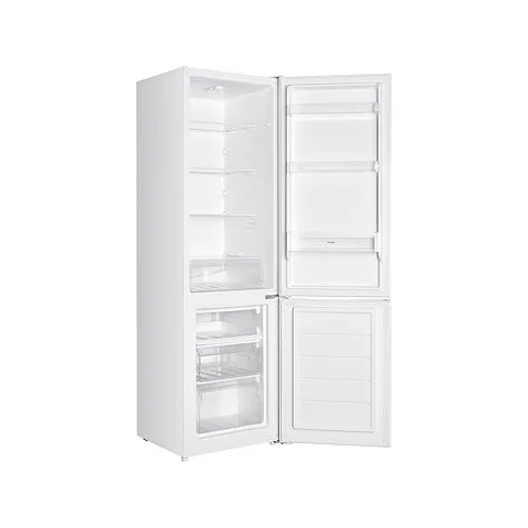 Hűtőszekrény - alsó fagyasztóval, teljes kapacitás 262 l, hűtő rész térfogata 191 l, fagyasztó rész térfogata 71 l, energiaosztály E, választható ajtónyitási oldal, süllyesztett fogantyúk, 4 polc, kihúzható fiók gyümölcsök és zöldségek tárolására, 3 polc az ajtóban, 3 rekesz a fagyasztóban, LED-es világítás, kézi hőmérséklet-szabályozás, hűtőszekrény ajtó nyitva jelzés, N/ST éghajlati osztály, méretek 180 × 55 × 56 cm (M×Sz×M), súly 50 kg,