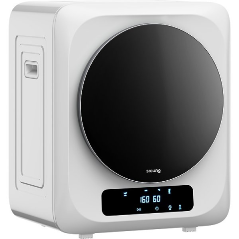 Szárítógép - asztali kivitel, G energiaosztály, 3 kg kapacitás, 60 dB zajszint, energiafogyasztás 192 kWh/100 ciklusonként, 6 program, késleltetett indítás, kijelző, érintőképernyős vezérlés és gyermekzár, hordozófogantyúk, csúszásgátló lábak, por- és légszűrő, kipufogócső a csomagban (150 cm), méretek 58 × 48 × 40 cm (M×H×SZ), súly 15 kg, 3 év garancia Siguro Compact Dry C251W szárítógépA Siguro Compact Dry C251W asztali szárítógép ideális kis la