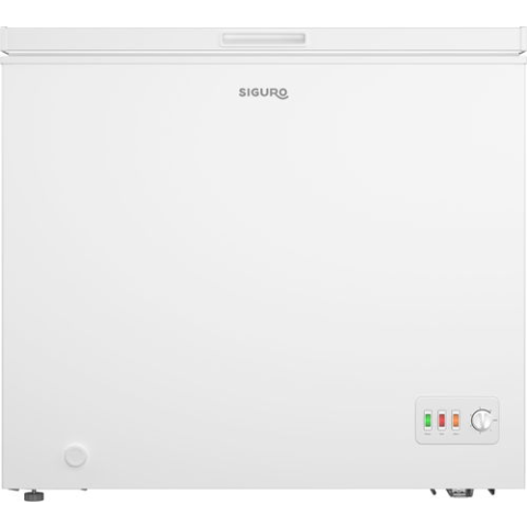 Fagyasztóláda - A energiaosztály, 200 l kapacitás, belső LED-világítás, kosár az élelmiszerek rendezéséhez, integrált fogantyú, "Alarm" jelzőfény magas hőmérséklet figyelmeztetéssel, áramszünet esetén az élelmiszerek akár 20 óráig fagyasztva maradnak, inverteres motor, 85 × 94,5 × 69,6 cm (Ma×Szé×Mé), tömeg 58,8 kg, 3 év garancia, 12 év garancia a kompresszorra SIGURO CF-A241W Premium fagyasztóládaA rendkívül gazdaságos, csendes és tágas SIGURO CF-A241W