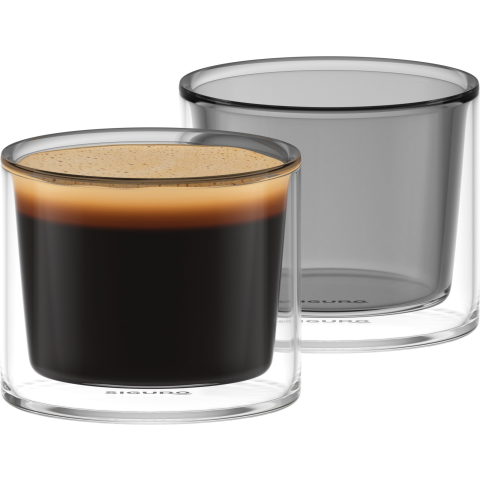 Thermo pohár - kézzel készített és fújt üvegek, boroszilikát üveg, dupla fallal, -20 és 150°C közötti hőmérsékletet bír, alkalmas hideg és meleg italokhoz, 75 mm átmérő, magasság 63 mm, szürke szín Siguro Elegance thermo pohárEzek a kézzel fújt, dupla falú poharak gyönyörű szürke kivitelben készültek, és rendkívül ellenálló boroszilikát üvegből állnak, amely kiváló hőszigetelő tulajdonságairól i