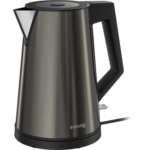 Vízforraló - rozsdamentes acél, 1,7 l űrtartalom, 2200 W teljesítményfelvétel, dupla burkolat, brit Strix csatlakozó több mint 12 000 használati élettartammal, 360°-ban forgatható talp kábeltárolóval működésjelző fény, rejtett fűtőtekercs, kivehető szűrő, automatikus kikapcsolás vízhiány és forráspont elérése esetén, túlmelegedés elleni védelem, hőbiztosíték, vízszintjelző, 65 cm-es kábelhossz, 3 év garancia Siguro Newcastle E460B vízforralóEz a mode