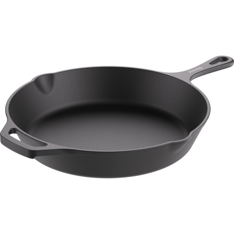Serpenyő - átmérő 30 cm, öntöttvas, alkalmas minden típusú tűzhelyre, sütőre, grillre és nyílt lángra, kiváló hővezető képesség, bevonat nélküli, mérgező anyagoktól mentes, fém eszközök is használhatók, első használat előtt ki kell égetni, súlya 3,05 kg Siguro Ready2Cook serpenyőA 30 cm átmérőjű Siguro Ready2Cook öntöttvas serpenyőt rendkívüli tartósság, hosszú élettartam vagy kiváló hővezető képesség jellemzi, és nemcsak steakek, hanem sz