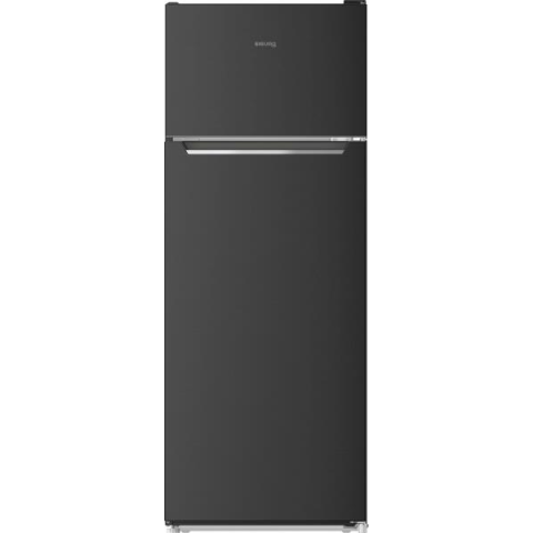 Hűtőszekrény - felülfagyasztós, összkapacitás: 211 l, hűtőszekrény kapacitása: 170 l, fagyasztó kapacitása: 41 l, D energiaosztály, választható ajtónyitási oldal, polcok száma a hűtőszekrényben: 3, kihúzható fiók friss élelmiszerek tárolására, polcok száma az ajtón: 3, rozsdamentes acél palacktartó, rekeszek száma a fagyasztóban: 2, LED világítás, manuális hőmérséklet-szabályozás, ezüst, N/ST klímaosztály, mérete: 142,8 × 54 × 55,1 cm (ma×sz×m