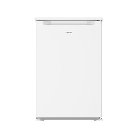 Kis hűtő - a fagyasztó a tetején található, teljes kapacitás 107 l, hűtő térfogata 94 l, fagyasztórekesz kapacitása 13 l, E energiaosztály, N/ST éghajlati osztály, opcionális oldalra felszerelhető ajtónyitás, 2 polcos hűtőszekrény, 1 kihúzható fiók a friss élelmiszerek számára, 1 fagyasztórekesz, 3 polc az ajtón, LED világítás, kézi hőmérséklet-szabályozás, fehér színű, méretek 84,5 × 54,9 × 55,7 cm (mag × szé × mé), tömeg 28 kg, 3 év garancia S