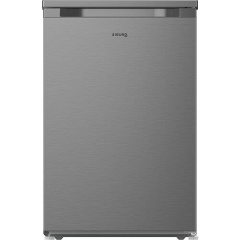 Kis hűtő - felül fagyasztós, teljes kapacitás 107 l, hűtési térfogat 94 l, fagyasztórekesz kapacitása 13 l, C energiaosztály, N/ST osztály, opcionális ajtónyílási oldal, 2 polcos hűtőszekrény, 1 kihúzható fiók a friss élelmiszerek számára, 1 fagyasztórekesz, 3 polc az ajtóban, LED világítás, kézi hőmérséklet-szabályozás, rozsdamentes acél kivitel, méretek 84,5 × 54,9 × 55,7 cm (m×sz×m), tömege 31 kg, 3 év garancia Siguro TT-E250S Chill & Freeze kis hű