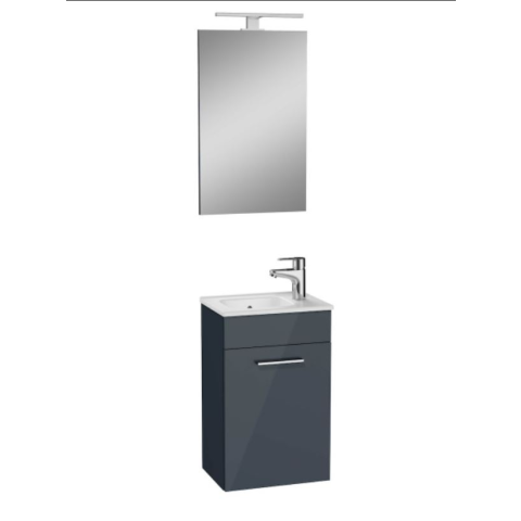 1 kép Siko Vitra Mia antracit fürdőszobaszekrény 39cmx28cm, mosdóval,tükörrel,lámpával, jobbos csaplyukkal