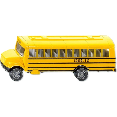 Vidd a gyerekeket suliba klasszikus iskolabusszal A SIKU amerikai iskolabusz egy fémből és műanyagból készült tipikus amerikai busz, amit főleg az iskolák használnak. A busz külseje és beltere is részletgazdag kidolgozású, a játék együtt használható más 150 méretarányú SIKU készletekkel is A SIKU amerikai iskolabusz méretei 10 x 3 x 4 cm.