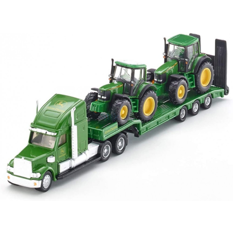 Kamion trailer John Deere traktorokkal 39328 Generációk óta a SIKU játékmodelleket tologatták körbe a játszószobában. Ennek pedig jó oka van Az apák vásárolják gyermekeiknek, a nagyapák pedig unokáiknak vásárolják a kis kézre készített játékmodelljeinket, köszönhetően a fémből és műanyagból készült stabil felépítésüknek. A SIKU John Deere traktort szállító kamion Trailer kiváló minőségű termék a gyerekek és szülők örömére. Méretek 225