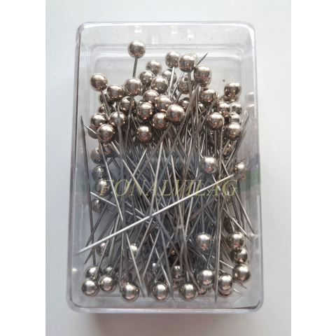 38mm dísz gombostű szép fényes, ezüst fejjel. 100db/doboz