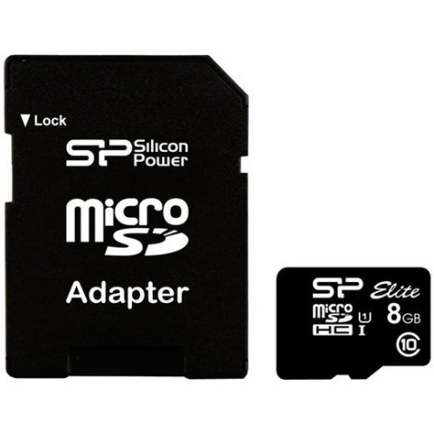 Silicon Power - 8GB microSDHC+adapter, UHS1 - SP008GBSTHBU1V10SP