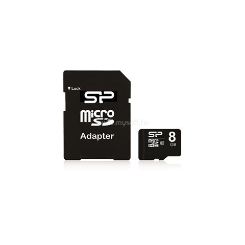 Silicon Power MicroSD kártya - 8GB microSDHC Class10 + adapter (SP008GBSTH010V10SP) memória (ram) 1 kép