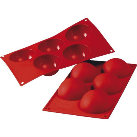 Silikomart szilikon félgömb sütőforma, 5 darabos. A lyukak űrtartalma 0,12 l, a lyukak átmérője 8 cm. A piros forma szilikonból készült. Kiváló desszertek elkészítéséhez és sütéshez.