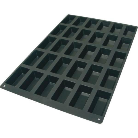 Silikomart szilikon mini süteményforma 30 nyílással, a nyílások mérete 9,9 x 4,9 cm. A fekete sütőforma ideális kis tortácskák, muffinok és egyéb desszertek készítéséhez. Készítsen könnyen és gyorsan kis édes finomságokat.
