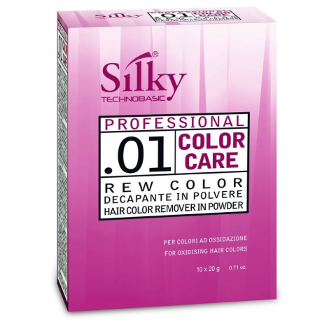 - Hajszínleszedő por a hajfestékek színpigmentjeinek eltávolításához- Retusál, javítja és eltávolítja a hajfestéket anélkül, hogy a haj eredeti színét befolyásolná és a hajszálak természetes pigmentjeit megváltoztatná- A Silky Rew Color hajradír finom hatása révén a hajszerkezetet érintetlenül hagyja, és nem világosítja a természetes hajszínét- Az új, por formájú receptnek köszönhetően hatékony, könnyen használható