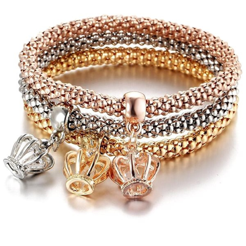 1 kép Silver Star rugalmas karkötő sebészeti acélból, 3 darab korona