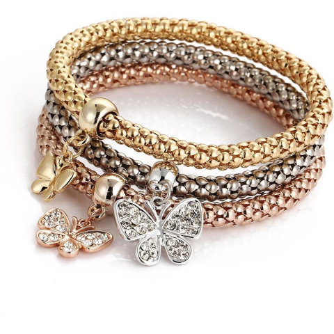Silver Star rugalmas karkötő sebészeti acélból, 3 db pillangó (18347) karkötő 1 kép