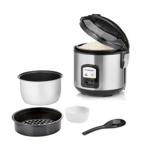 - Luxus-rizsfőző, risotto-készítő és zöldség-pároló 3 az 1-ben - Főzés, párolás és melegen tartás. - 2 jelzőlámpa, főzéshez és melegen tartáshoz - 2.2 literes kapacitású ILAG bevonatú edény (töltőkapacitás: max. 1 liter / 5 bögre / 800g rizs) - Dupla falú