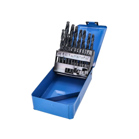 Ez a 19 darabból álló HSS-R magas sebességű acél fúrószár készlet egy fémdobozban kerül szállításra. A készlet kiválóan alkalmas nem vas alapú fémek, acél, alumínium, fa és műanyagok fúrására. A 4341-es, hidegen kovácsolt szárak DIN 338 szabvány szerint készülnek, és 118°-os vágóéllel rendelkeznek. A készlet méretei: 1-10mm, 0,5 mm-es lépésekben. A termék képén látható tartozékokat tartalmazza a csomag.Kompatibilitás: