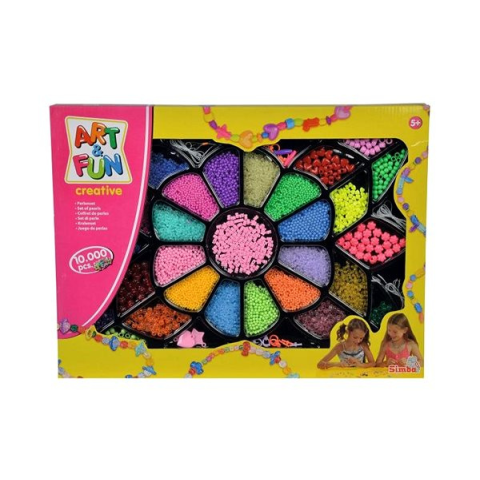 Gyöngy - fűzős, anyaga műanyag, tárolódoboz, kötöző és 10000 gyöngy a csomagban A Simba ajándékszett minden kis divatrajongót lenyűgöz. Ez egy fűzhető gyöngyökből álló készlet különböző színekben, amelyekből mindenféle medált, karkötőt és díszt készíthetsz. Az ajándékdoboz virág