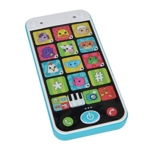 Gyerek telefon - érintőképernyős, állatkák tanítására, 1 éves kortól alkalmas, hangeffektek és fényeffektek, műanyag anyagú, színes kijelzővel, 13,5 cm mélységű Amikor minden a digitális világról és az okostelefonok hódításáról szólnak, nem csoda, hogy a legkisebbek is vágynak egy saját mobiltelefonra. A Simba által gyártott "Az első okostelefonom",