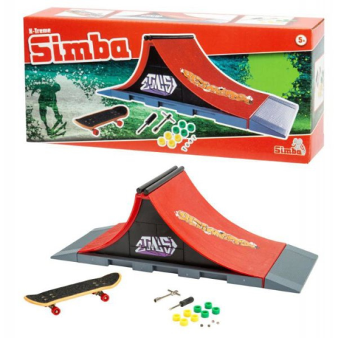 Fingerboard rámpa - rámpa, fingerboard a csomagban, mérete 100 × 60 × 250 mm (Ma×Sz×H), anyaga műanyag, ajánlott 5 éves kortól, piros kivitel A Simba szett Ultimate ujj gördeszkával és rámpával remek választás az 5 éves és annál idősebb gyermekek számára, akik szeretnek trükköket kipróbálni és élvezik a mozgási kihívásokat, akár kicsiben is