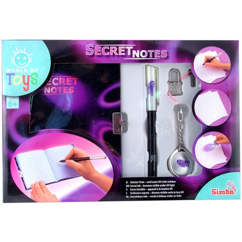 Jegyezd fel legbizalmasabb titkaidat a Secret Notes titkos naplódba! A készletben egy A5-ös méretű kapcsos naplót, kis lakatot, varázstollat és UV-lámpát találhatsz. A varázstollal a naplóba láthatatlan tintával tudsz írni, amit csak a kis kulcstartón lógó UV lámpa tud felfedni. Így csak te tudod elolvasni, mit írtál bele. A lakathoz kis kulcs is jár, amivel a napló kapcsát tudod lelakatolni. Az UV lámpa 2 db CR2016 gombelemmel működik, a csomagolás az elemeket tart