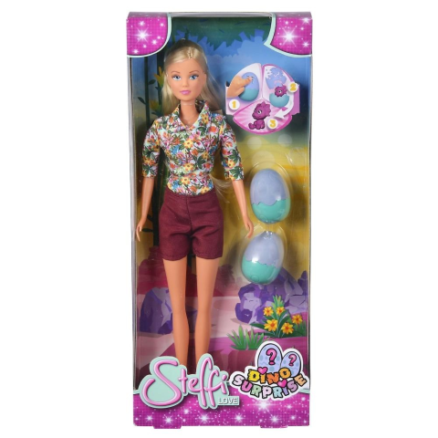 A Simba Steffi Love Baba meglepetés dinó tojásokkal játékszett igazán különleges játékélményt nyújt a kislányoknak, Steffi célja, hogy dinoszauruszokat kutasson. Ehhez a különleges küldetéshez egy csinos, virágmintás inget, rövidnadrágot és kényelmes b