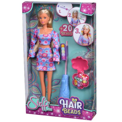 Gyöngyös hajtincsek Steffi Love-nak!Steffi Love él-hal a trendi frizurákért, pláne, ha a hajkölteményt gyöngyök is feldobják! Ezzel a készlettel a kis fodrászok kiélhetik kreativitásukat, és a csomagban található több mint 20 gyönggyel igazán egyedivé varázsolhatják Steffi frizuráját.A gyöngyös hajtincsek megszületéséhez a kicsiknek nincs más dolguk, mint tetszőleges sorrendben felfűzni a gyöngyöket a hajformázó eszközre, Steffi Love egyik tincsét az eszk