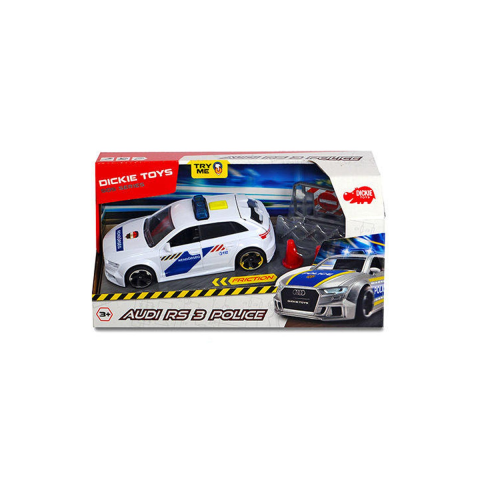 Az Audi RS3 rendőrautó egy részletgazdag játékjármű, amelyet a Dickie Toys készített a kis rendőrök számára. Ez az autó fény- és hanghatásokkal rendelkezik, így még izgalmasabb élményt nyújt a gyerekek számára, amikor üldözőbe vesznek egy képzeletbeli bűnözőt. A jármű "friction" meghajtással van ellátva, ami azt jelenti, hogy lendkerekes hajtású, és könnyedén felgyor