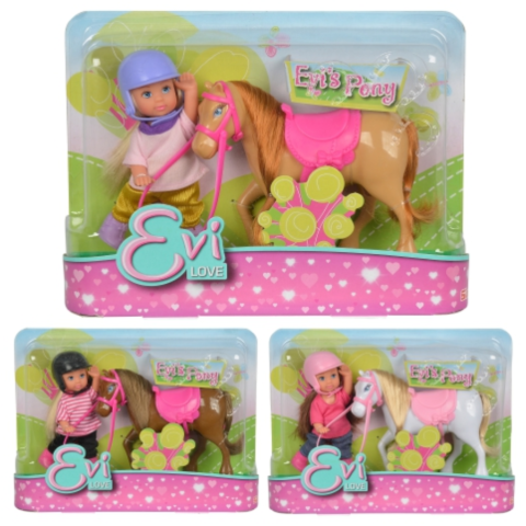 Egy-egy szett egy Évi babát és egy tündéri kis pónit tartalmaz, természetesen a lovagláshoz szükséges minden felszereléssel.