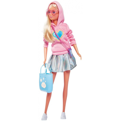 Steffi Love játékbaba ezúttal pasztell színű ruhákban, táskával és telefonnal érkezik a gyerekekhez. Steffi a kék táskáját, valamint a telefonját meg tudja tartani a kezében. A baba rózsaszín felsőt, pasztell kék szoknyát, fehér sportcipőt és rózsaszín sz