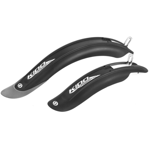 Műanyag sárvédő szett, Egyszerű és gyors felhelyezés.16" gyerek kerékpárhoz Szín: fekete, szürke gumi sárfogó véggel