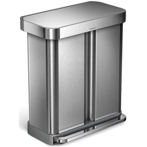 1 kép SimpleHuman pedálos két tartályos szelektív szemétkuka, 58 l, rozsdamentes acél, szürke