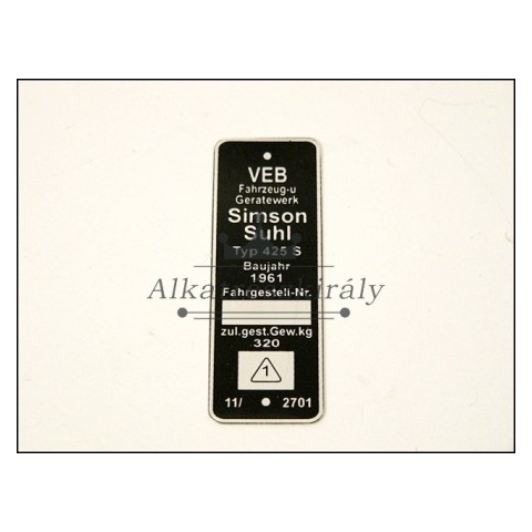 1 kép SIMSON TÍPUSTÁBLA /425S/ /SIMSON - 250
