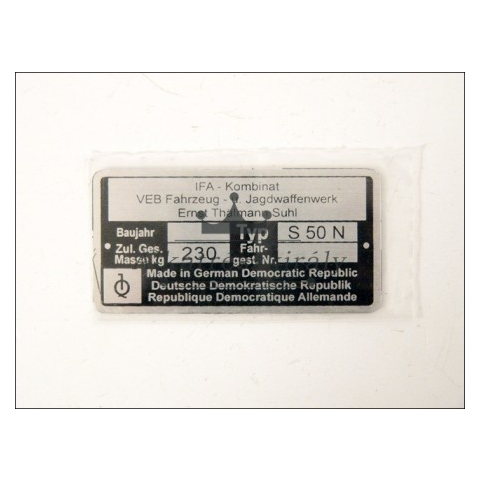1 kép SIMSON TÍPUSTÁBLA /S50N/ SIMSON - 50