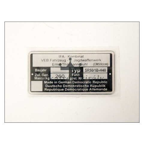 1 kép SIMSON TÍPUSTÁBLA /SR50/1B-H40/ SIMSON - ROLLER