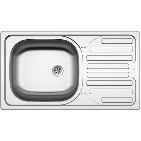 Rozsdamentes mosogató - téglalap alakú forma, egymedencés, medencével, csepegtetővel, rozsdamentes acél anyagból készült, rozsdamentes acél szín, a mosogató méretei: 76 cm × 43,5 cm × 15 cm (Ho x Szé x Ma), medence méretei: 38 × 34 × 15 cm (Ho x Szé x Ma) Az egymedencés SINKS CLASSIC 760 M mosogatótálca matt, 18/10-es CrNi rozsdamentes acélból készült, amelynek vastagsága 0,5 mm. A nagyméretű csepegtetőtálcával rendelkező mosogató felülről szerelhető b