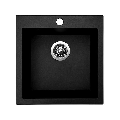 Gránit mosogató - téglalap alakú forma, egymedencés, gránit anyagból készült, a mosogató csak specifikus módon szerelhető be, szűrős lefolyó, mosogatógépre csatlakoztatható, fekete szín, a mosogató méretei: 45,5 cm × 46 cm × 18 cm (Ho x Szé x Ma), medence méretei: 39 × 36 × 18 cm (Ho x Szé x Ma) Egy ilyen SINKS gránit mosogató ideális választás mind az újabb, mind a régebbi konyhába egyaránt. Ez az alapanyag nagymértékben ütés- és törésálló, és nagy