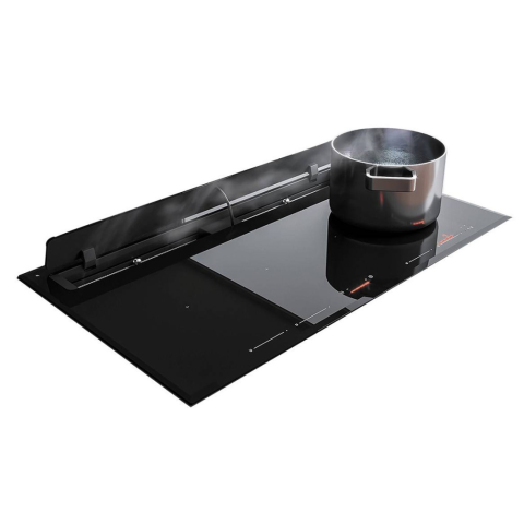 SIRIUS - S-DDH5 SHADOW indukciós főzőlap beépített elszívóval A Shadow indukciós főzőlapban a főzés és az elszívás együtt él egy elegáns és egyedi tárgyban. Az exkluzív kialakítású fekete kerámiaüveg két különböző lépésben nyitható: 45° és 90°-ban. Az