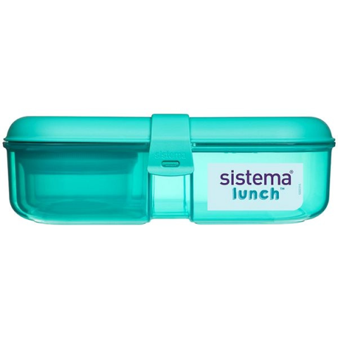 Uzsonnás doboz - osztott, gyerek és joghurthoz, űrtartalma 1,1 l, mérete 6,6 × 20,4 × 20,4 cm (Ma×Sz×Mé), fedél klippes rögzítéssel, alkalmas mosogatógépbe, mikrohullámú sütőbe és fagyasztóba, anyaga műanyag, zöld kivitel Az igényes kialakítású SISTEMA uzsonnás doboz szilárd kapcsokkal lehetővé teszi a tartalom biztonságos lezárását, és 1,1 l nagyságú. A beépített belső elválasztó megkönnyíti az egyes ételek elválasztá