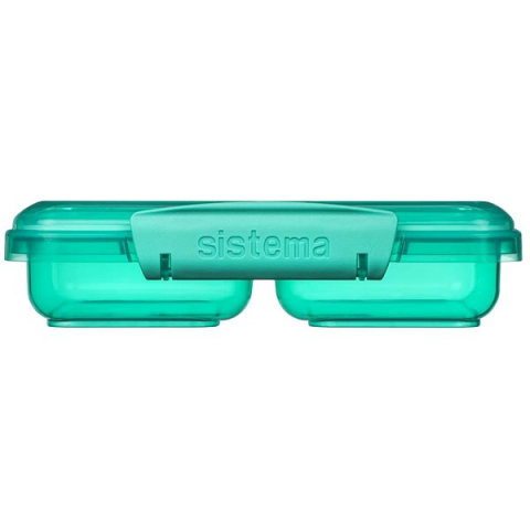 Uzsonnás doboz - osztott, gyerek, űrtartalma 0,35 l, mérete 4,2 × 11,5 × 17,5 cm (Ma×Sz×Mé), fedél klippes rögzítéssel, alkalmas mosogatógépbe, mikrohullámú sütőbe és fagyasztóba, anyaga műanyag, zöld kivitel A praktikus SISTEMA uzsonnás doboz szilárd lezárású kapcsokkal védi a tartalmát, és teljes 0,35 l térfogatú. A beépített belső elválasztó segít elválasztani az egyes ételeket. Alkalmas mikrohullámú sü