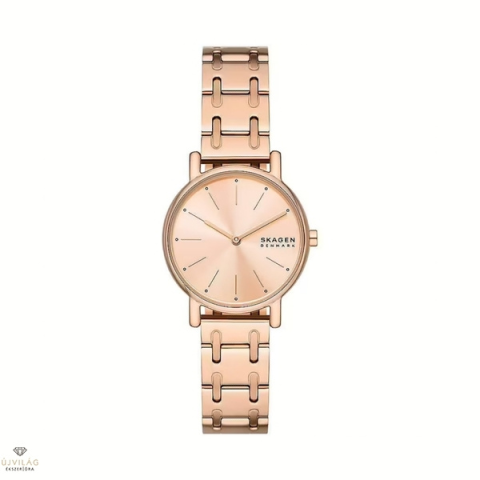 Karóra nőknek - analóg idő megjelenítés, óramű típusa quartz, kerek számlap, 12/24 órás formátum, minimalista, számozás nélküli, ásványi számlap, 50 m (5 ATM) vízhatlanság, a tok anyaga rozsdamentes acél, a tok színe rózsaarany, a szíj anyaga rozsdamentes acél, a szíj színe rózsaarany, 18 cm max. csuklóméretre, cserélhető szíjjal A kitűnő Skagen Signatur Lille női kerek karóra SKW3125 nőknek karóra alkalmas mindennapi viseletre. Az alapját egy 30 mm szé