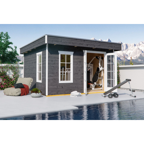 Minőségi Skanholz design faház 380 x 300 vagy 380 x 380 cm méretben, 28 mm falvastagsággal, 19 mm padlózattal együtt
