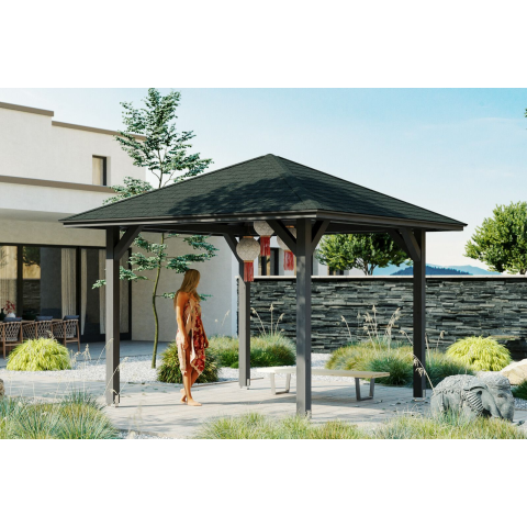 Skanholz Kerti pavilon négyszögletű szaletli Cannes 374 x 374 cm, Antracit szürke RAL7016 kerti bútor termékleírás
