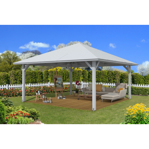 Skanholz Kerti pavilon négyszögletű szaletli Cannes 439 x 439 cm, fehér kerti bútor termékleírás