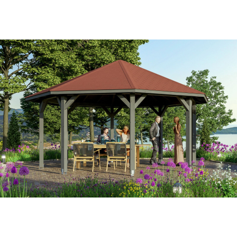 Teljes Skanholz Nyolcszögletű kerti pavilon Nice371 630 cm átmérő, Agyagszürke RAL7015 termékleírás