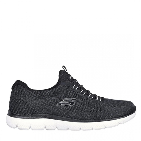 A Skechers Summits - Fun Flair modellben a sportos stílus és a rugalmas kényelem kéz a kézben jár. A kényelemről kevertszálas speciális hálós felső, rugalmas fűző és párnázott Skechers Memory Foam talpbetét gondoskodik.